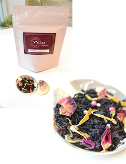 市の木・ナナカマドの赤色をイメージした「ローズレッド」やお菓子に使われるカスタードクリームの黄色をイメージした「マリーゴールド」などを茶葉に加え、ラズベリーの香りがほんのり香るオリジナルブレンドの紅茶です。